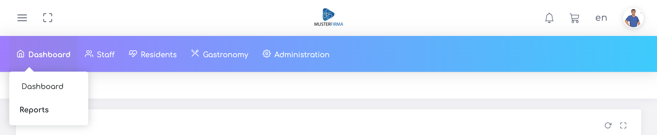 Die Dashboard-App in der Hauptmenüleiste besteht aus Dashboards und Berichten.