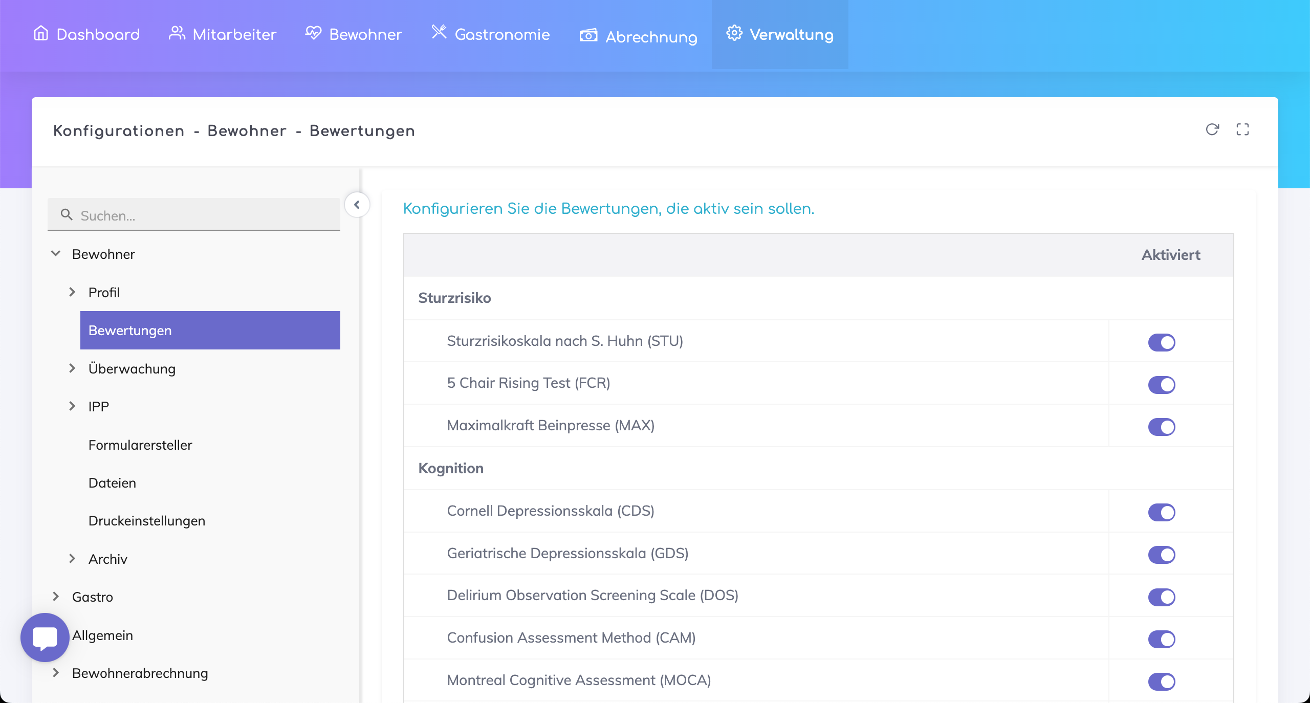 Konfigurationen > Bewohner > Bewertungen