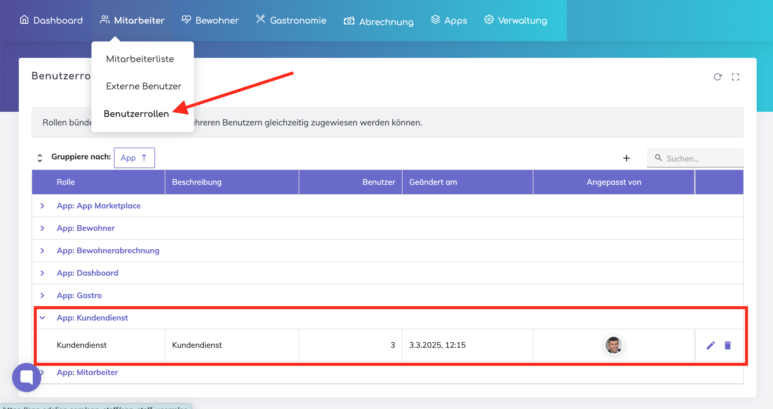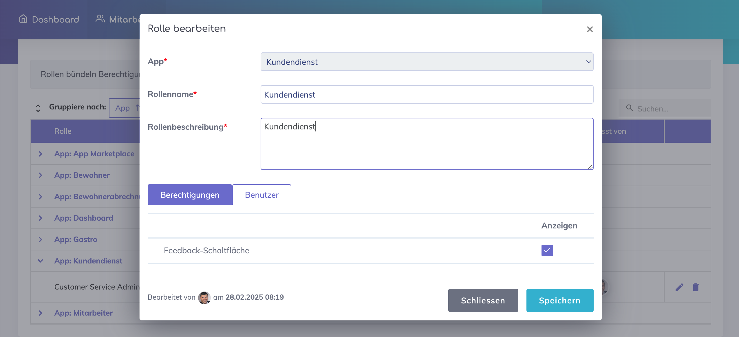 Das Kundendienst-Widget ist mit den Benutzerrollen und Autorisierungen verknüpft. Das bedeutet, dass das Widget nur für Benutzer verfügbar ist, die Sie auswählen.