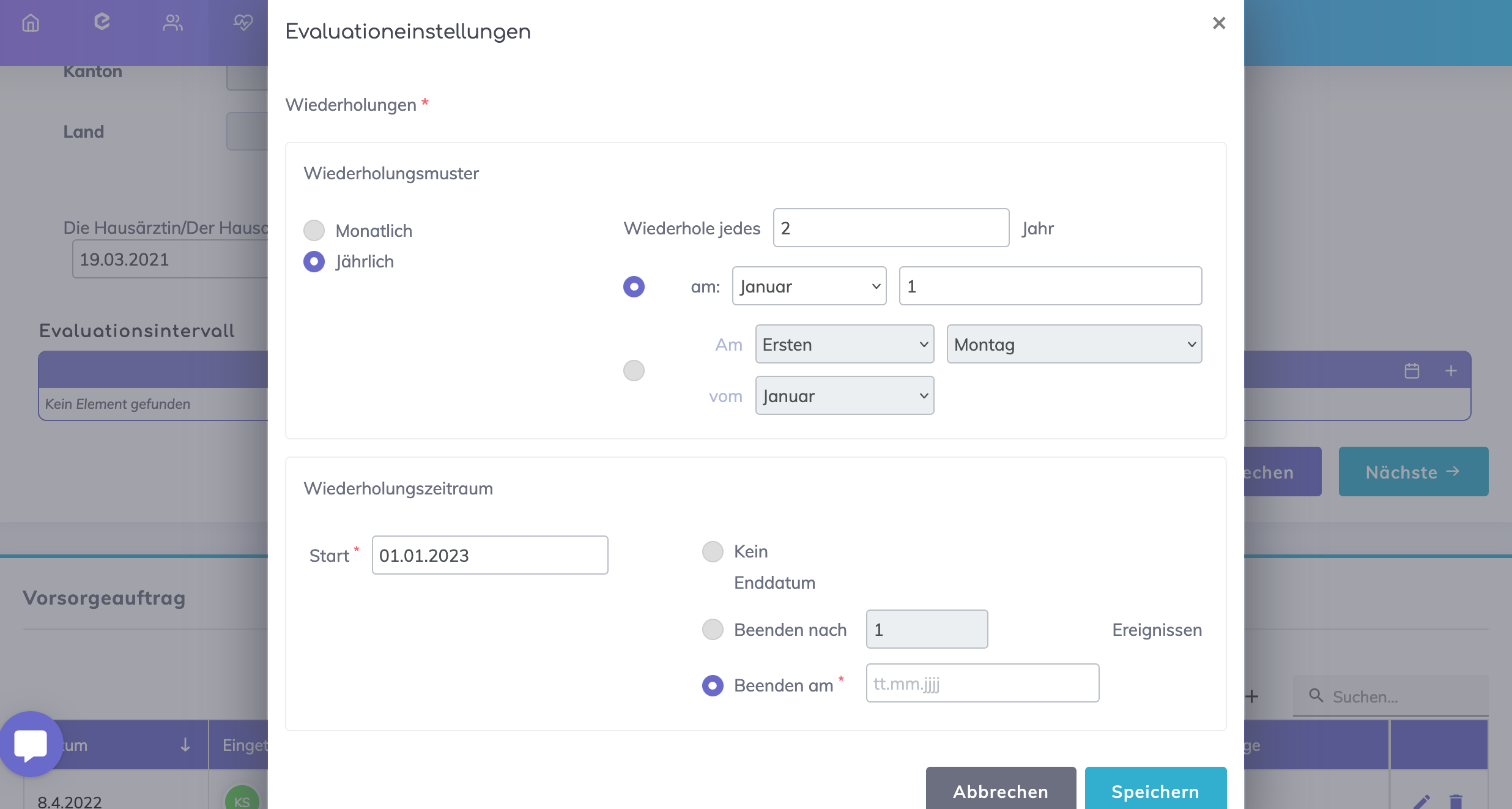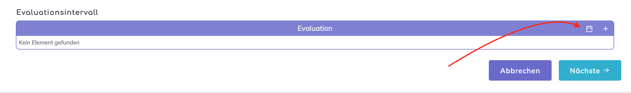 Klicken Sie wie gezeigt auf das Kalendersymbol, um die Evaluationsintervalle einzurichten.