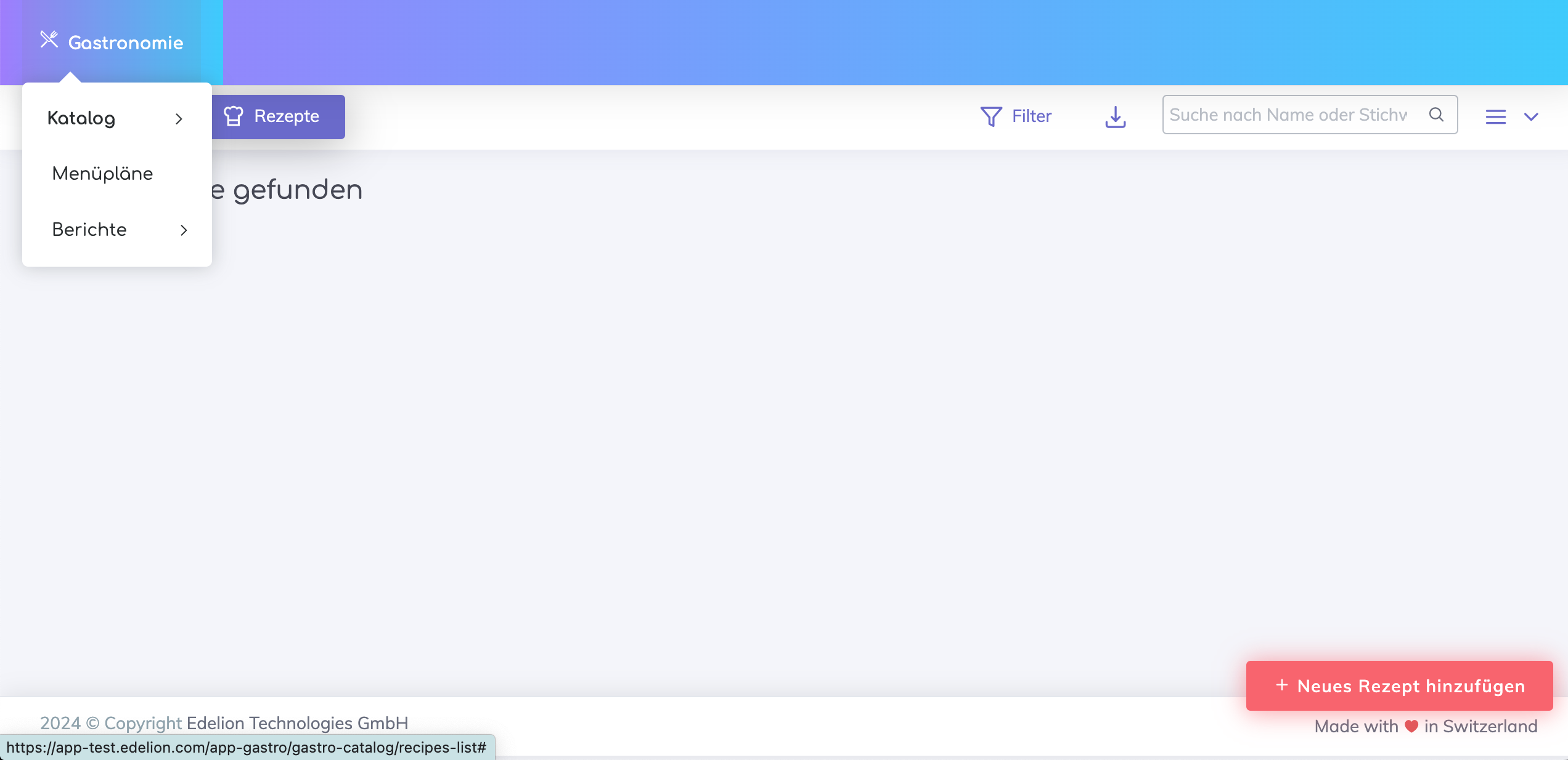 Gehen Sie zum Rezeptkatalog der Gastronomie-App.