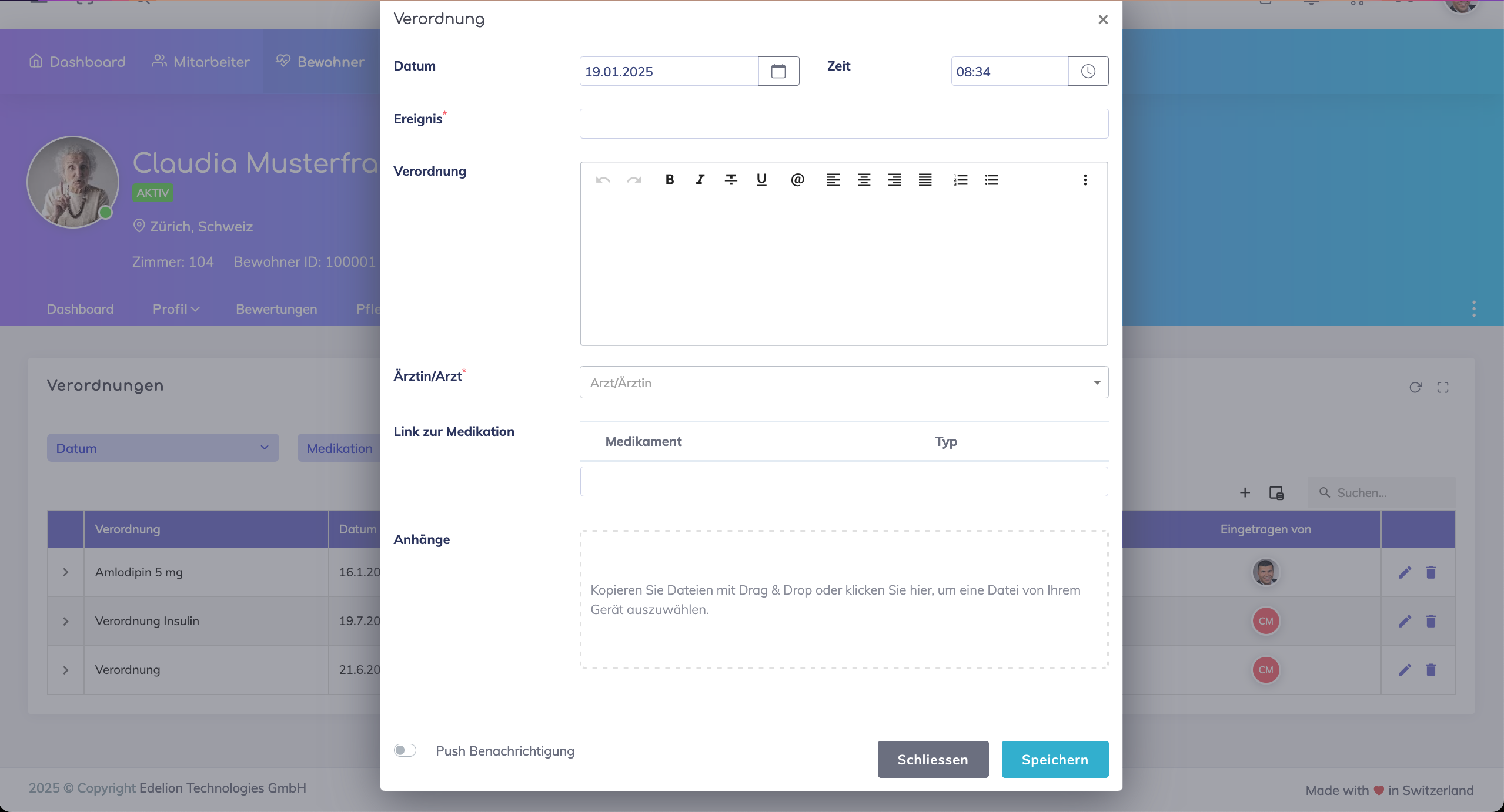 Push-Benachrichtigungsschalter - Durch das Einschalten können Sie andere Betreuer über eine In-App- oder E-Mail-Benachrichtigung über diesen neuen Eintrag informieren. Ihr Administrator kann konfigurieren, welche Betreuer solche Benachrichtigungen erhalten können.
