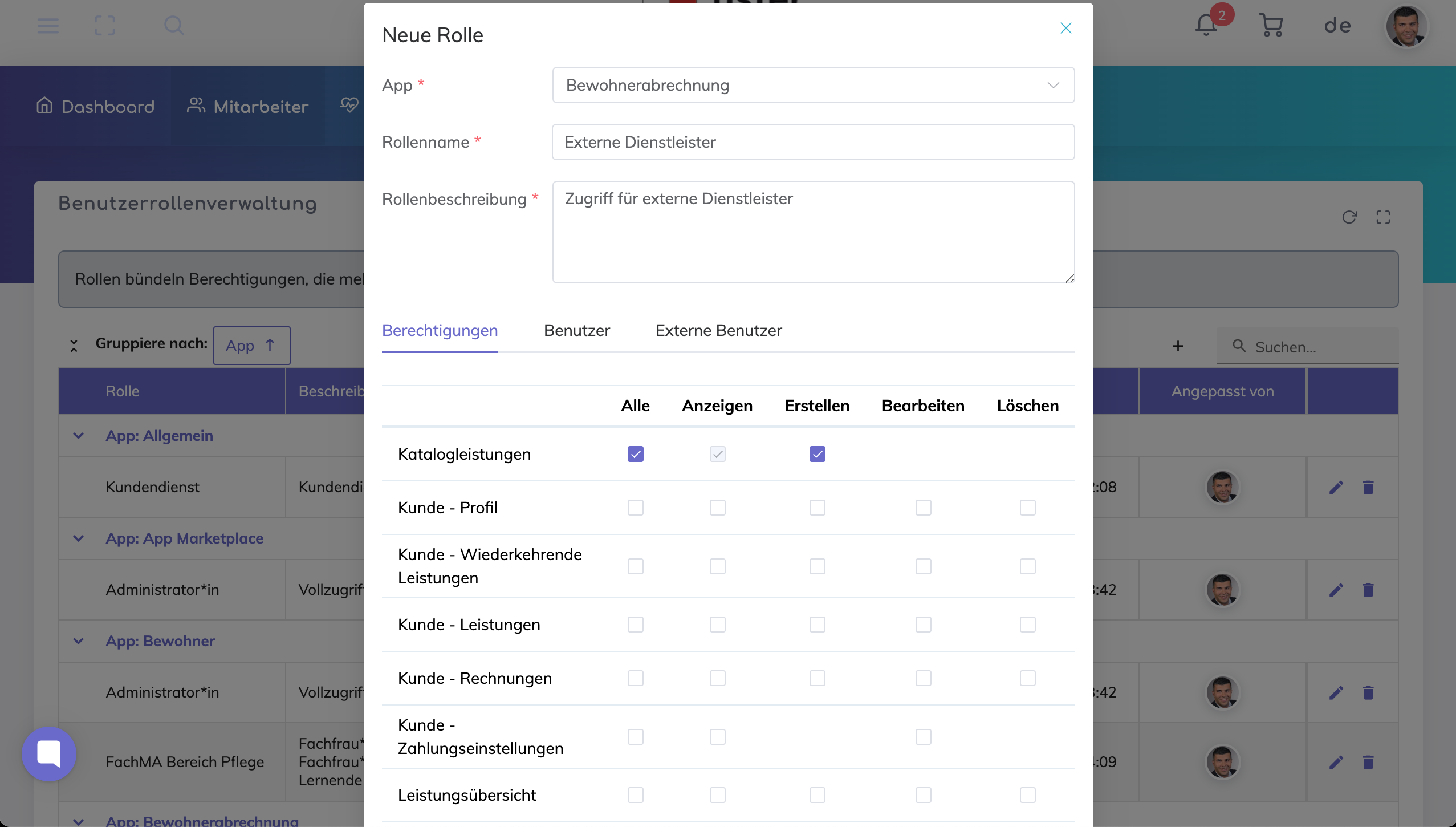 • Externe Dienstleister erhalten ausschliesslich Zugriff auf definierte Leistungskataloge.