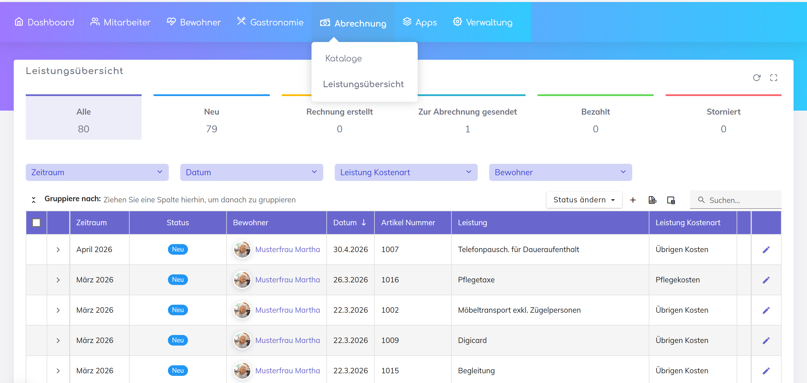 Leistungen zur Bewohnerabrechnung erfassen – Übersicht