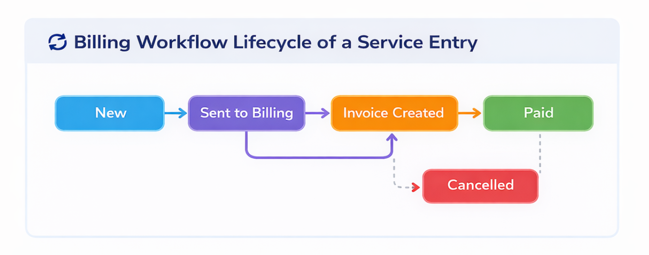 Billing Workflow OverviewServices move through different statuses during the billing process: