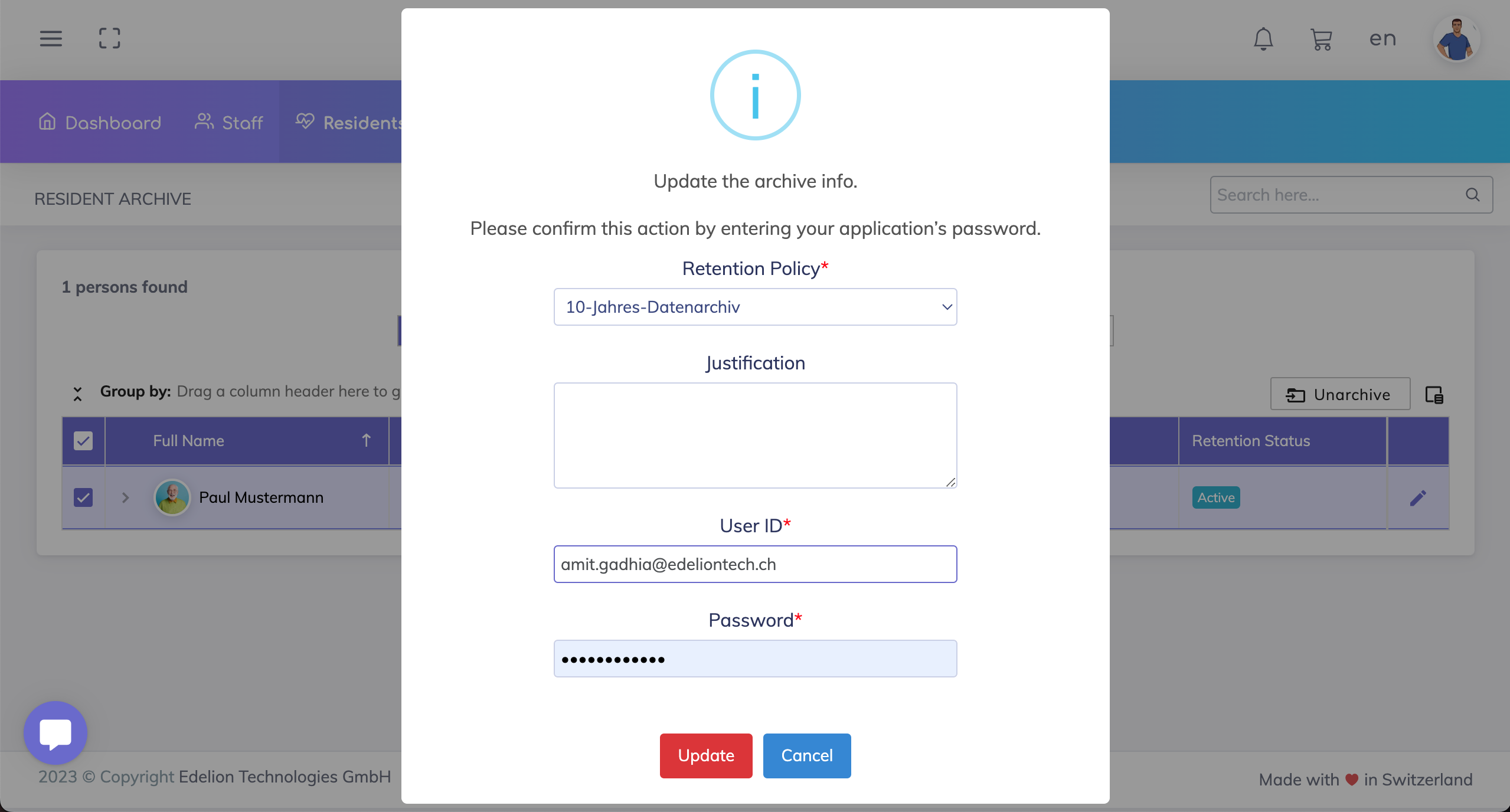 Edit permissions give the assigned user the possibility to update the archiving details.