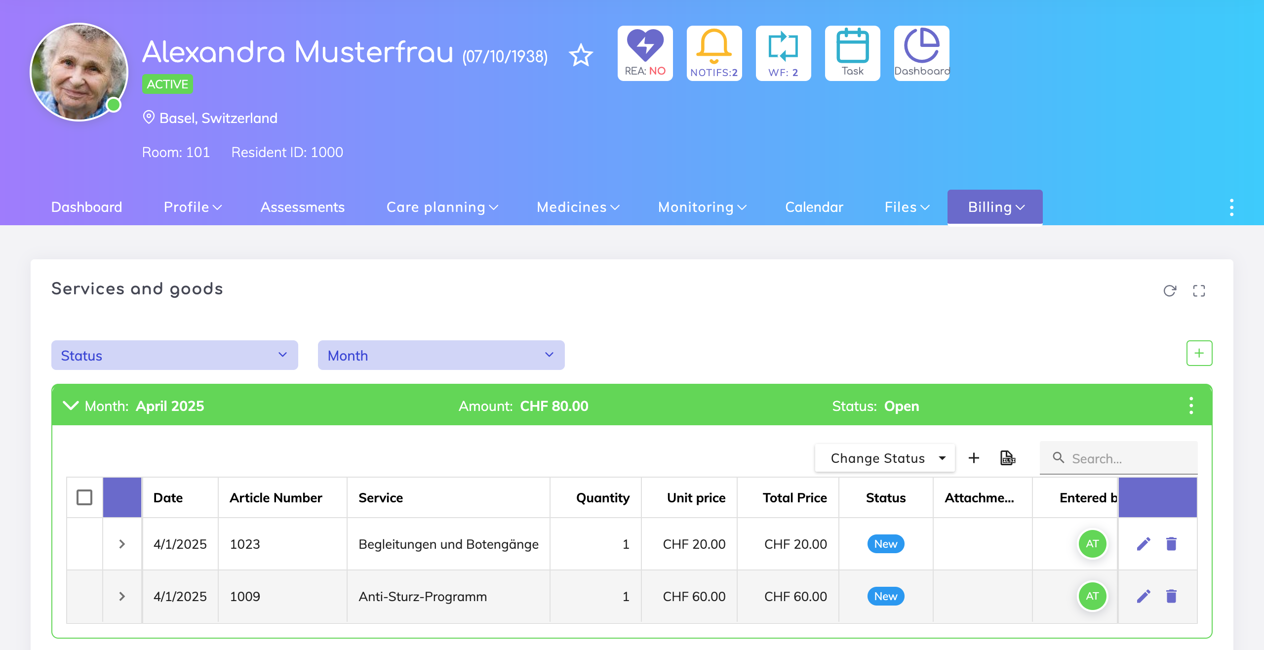 When to Use ThisUse this feature when a resident receives a service or product (e.g. transport services, haircuts) that needs to be billed. These items must already be set up in the product catalog by your Administrator.